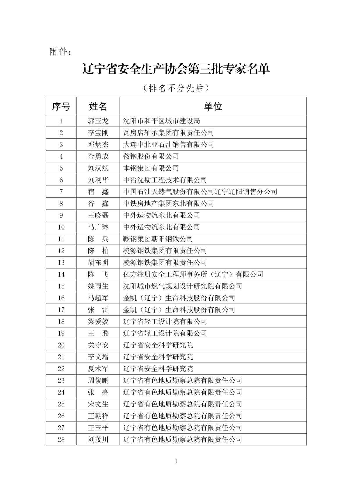 关于公布辽宁省安全生产协会 第三批专家名单的通知