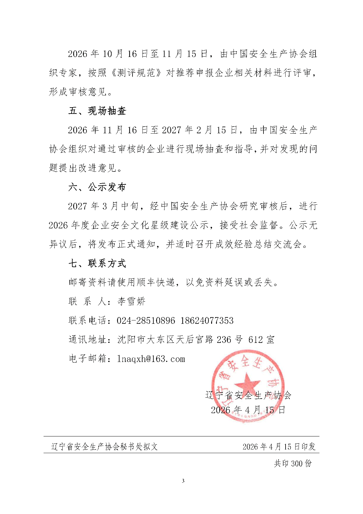 关于做好 2026 年中国安全生产协会 企业安全文化星级建设工作的通知